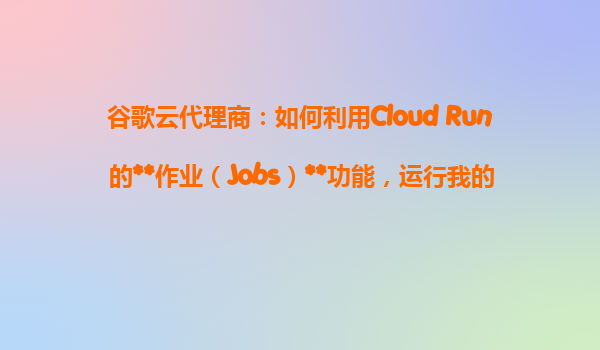 2025-10-28谷歌云代理商指南:如何利用CloudRun的作業(yè)(Jobs)功能運(yùn)行定時或批處理任務(wù) 一、CloudRunJobs的核心價值 GoogleCloudRun的作業(yè)(Jobs)功能是無服務(wù)器計...