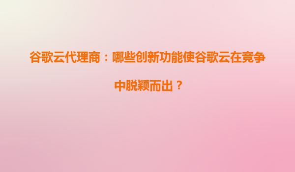 2025-07-01谷歌云代理商:哪些創(chuàng)新功能使谷歌云在競爭中脫穎而出? 在當今快速發(fā)展的云計算市場中,谷歌云(GoogleCloud)憑借其獨特的技術(shù)優(yōu)勢和創(chuàng)新能力,逐漸成為企業(yè)數(shù)字化轉(zhuǎn)型的重要選擇。與此同時,谷歌云代理商(...