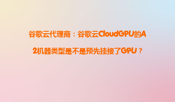 谷歌云代理商:谷歌云CloudGPU的A2機器類型GPU預先掛接解析 一、谷歌云CloudGPU的A2機器類型簡介 谷歌云的CloudGPU是一種專為高性能計算(HPC)和機器學習(ML)工作負載設計的云服務。A2機器類型是C...