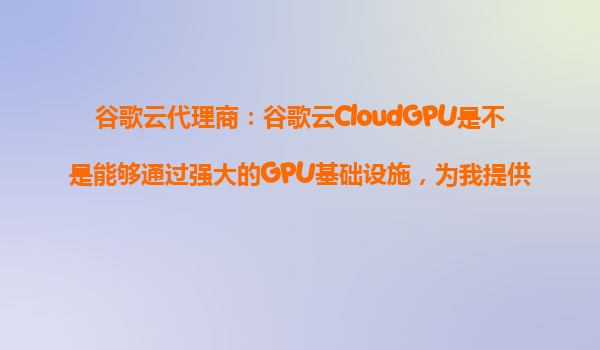 2025-10-26谷歌云代理商指南:如何在谷歌云上利用CloudGPU的靈活性隨時(shí)擴(kuò)展虛擬機(jī)規(guī)格 引言 在當(dāng)今快速發(fā)展的云計(jì)算領(lǐng)域,企業(yè)需要靈活、高效的基礎(chǔ)設(shè)施來(lái)應(yīng)對(duì)不斷變化的業(yè)務(wù)需求。谷歌云(Go...