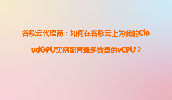 2025-10-23谷歌云代理商:如何在谷歌云上為我的CloudGPU實(shí)例配置最多數(shù)量的vCPU? 引言 在當(dāng)今數(shù)據(jù)驅(qū)動的世界中,云計(jì)算已成為企業(yè)和技術(shù)團(tuán)隊(duì)不可或缺的一部分。谷歌云(GoogleCloudPlatform,GCP)以其高性能、靈...