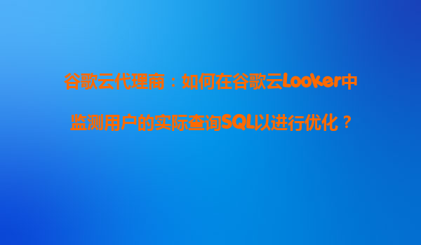 4008-020-360 谷歌云代理商:如何在谷歌云Looker中監(jiān)測(cè)用戶的實(shí)際查詢SQL以進(jìn)行優(yōu)化? 引言 在數(shù)據(jù)驅(qū)動(dòng)的商業(yè)環(huán)境中,Looker作為谷歌云(GoogleCloud)旗下的BI工具,能夠幫...