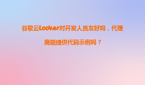 2025-11-04谷歌云Looker對(duì)開發(fā)人員友好嗎?代理商能否提供代碼示例? 引言:Looker作為數(shù)據(jù)分析工具的核心價(jià)值 隨著企業(yè)對(duì)數(shù)據(jù)驅(qū)動(dòng)決策的需求增長(zhǎng),谷歌云旗下的Looker因...