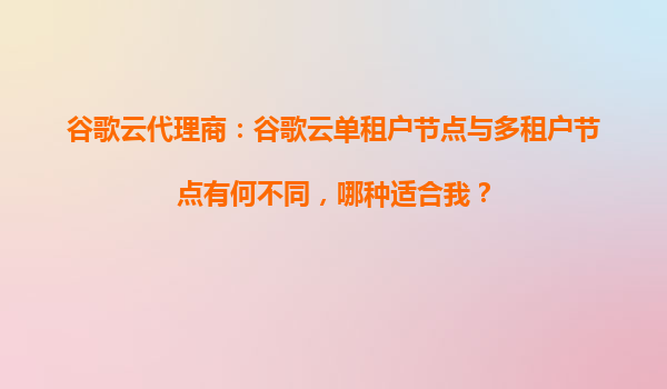 2025-09-16谷歌云代理商:谷歌云單租戶節(jié)點與多租戶節(jié)點有何不同,哪種適合我? 1.谷歌云的核心優(yōu)勢 在深入探討單租戶節(jié)點和多租戶節(jié)點的區(qū)別之前,有必要了解谷歌云(GoogleCloud)的核心競爭優(yōu)勢。作為全球領(lǐng)先的云計...