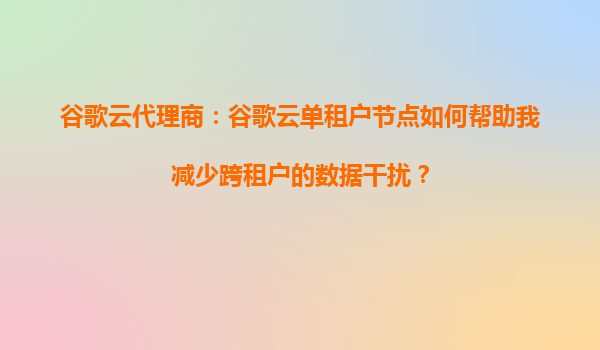 2025-09-16谷歌云代理商:谷歌云單租戶節(jié)點如何提高應(yīng)用的響應(yīng)速度和穩(wěn)定性? 引言 在當(dāng)今快節(jié)奏的數(shù)字時代,企業(yè)對于云計算的性能和穩(wěn)定性要求越來越高。谷歌云(GoogleCloud)作為全球領(lǐng)先的云服務(wù)提...
