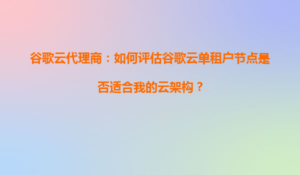 2025-09-16谷歌云代理商:如何評估谷歌云單租戶節(jié)點是否適合我的云架構(gòu)? 一、什么是谷歌云單租戶節(jié)點? 谷歌云單租戶節(jié)點(Sole-TenantNodes)是谷歌云提供的一種專用計算資源服務(wù),允許用戶獨占物理...