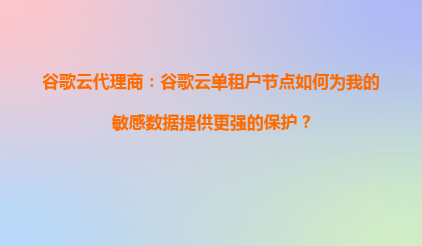 2025-09-16谷歌云單租戶節(jié)點:為敏感數(shù)據(jù)筑起安全防線 在數(shù)字化時代,企業(yè)數(shù)據(jù)安全成為重中之重。尤其對于涉及金融、醫(yī)療、政府等行業(yè)的敏感數(shù)據(jù),如何確保其安全性和合規(guī)性是企業(yè)上云的核心考量。谷歌云單租戶節(jié)點(Sole-...