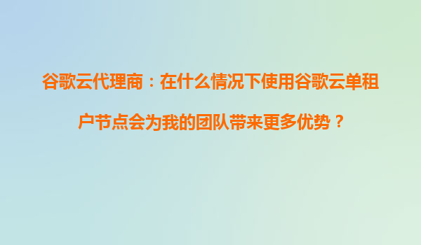 2025-09-16谷歌云代理商指南:何時選擇谷歌云單租戶節(jié)點為團(tuán)隊帶來更多優(yōu)勢 在云計算領(lǐng)域,多租戶架構(gòu)因其資源共享和成本效益而廣受歡迎。然而,在某些特定場景下,單租戶節(jié)點能提供獨特優(yōu)勢。作為谷歌云代理商,我們深知客...