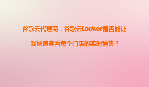 2025-09-16谷歌云代理商:谷歌云Looker是否能讓我快速查看每個門店的實時銷售? 谷歌云Looker的實時數(shù)據(jù)分析能力 谷歌云Looker作為一款強(qiáng)大的商業(yè)智能(BI)工具,整合了實時數(shù)據(jù)處...