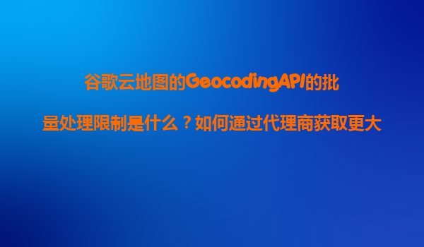2025-11-09谷歌云地圖GeocodingAPI的批量處理限制解析 谷歌云地圖的GeocodingAPI是開發(fā)者廣泛使用的地址解析服務(wù),能將物理地址轉(zhuǎn)換為經(jīng)緯度坐標(biāo)(正向地理編碼),或反向?qū)⒆鴺?biāo)轉(zhuǎn)換為可讀地址。對(duì)于批量處理任務(wù),谷歌...