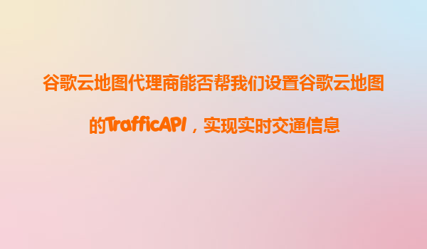 2025-11-09谷歌云地圖代理商能否幫我們設置谷歌云地圖的TrafficAPI,實現(xiàn)實時交通信息的精準顯示? 一、谷歌云地圖代理商的核心服務能力 谷歌云地圖代理商作為官方授權合作伙伴,具備專業(yè)的技術能...