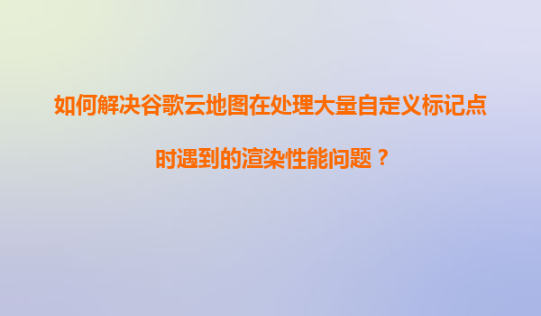2025-11-08如何解決谷歌云地圖在處理大量自定義標(biāo)記點(diǎn)時(shí)遇到的渲染性能問題? 一、問題背景與挑戰(zhàn) 谷歌云地圖(GoogleMapsPlatform)以其高精度、全球覆蓋和豐富的API功能成為開發(fā)者首選。然而,當(dāng)應(yīng)用需要同時(shí)渲染...