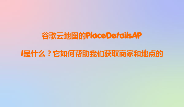 2025-11-08谷歌云地圖的PlaceDetailsAPI解析與其商業(yè)應(yīng)用價(jià)值 一、什么是PlaceDetailsAPI? 谷歌云地圖的PlaceDetailsAPI是谷歌云平臺(tái)(GoogleCloudPlatform,GCP)提供的一項(xiàng)核心服務(wù),屬于PlacesAP...
