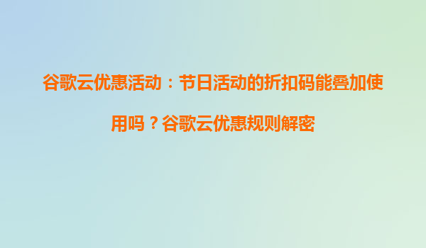 4008-020-360 谷歌云優(yōu)惠活動(dòng):節(jié)日活動(dòng)的折扣碼能疊加使用嗎?谷歌云優(yōu)惠規(guī)則解密 一、谷歌云節(jié)日優(yōu)惠活動(dòng)概覽 谷歌云(GoogleCloud)作為全球領(lǐng)先的云計(jì)算服務(wù)提供商,常年通過多種優(yōu)惠活動(dòng)吸引用戶,尤其在...