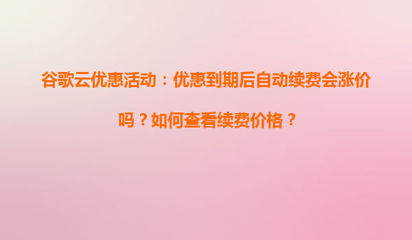 2025-04-03谷歌云優(yōu)惠活動(dòng)解析:到期后續(xù)費(fèi)價(jià)格與查看方式 谷歌云(GoogleCloud)作為全球領(lǐng)先的云計(jì)算服務(wù)平臺(tái),始終以高性能、高可靠性和靈活的定價(jià)模式吸引著企業(yè)和開發(fā)者。近期推出的限時(shí)優(yōu)惠活動(dòng)更是為用戶提供了低...