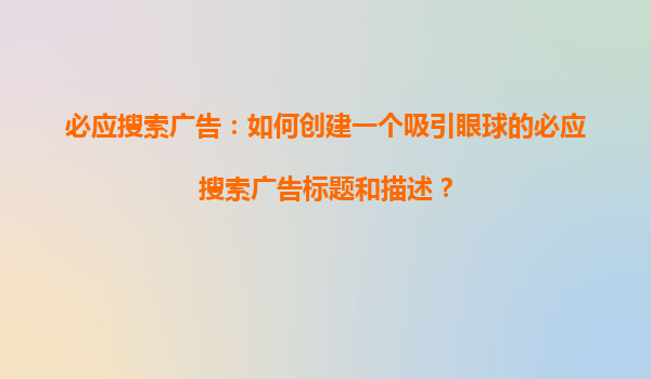 2025-11-02一、標題解析:關鍵詞布局的重要性 標題是廣告創(chuàng)意的核心組成部分,直接影響用戶點擊率和競價推廣效果。一個優(yōu)質的標題應包含以下關鍵元素: 1.核心關鍵詞:如"必應搜索引擎競價推廣",明確匹配用戶搜索意圖...