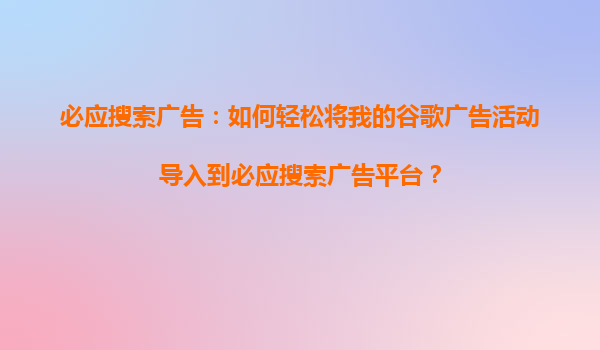4008-020-360 必應(yīng)搜索引擎競價(jià)推廣的核心優(yōu)勢及標(biāo)題內(nèi)容分析 一、必應(yīng)競價(jià)推廣的市場覆蓋優(yōu)勢 作為全球第二大搜索引擎,必應(yīng)(Bing)在美國市場份額超過30%,并與雅虎搜索共享技術(shù),形成龐大的流量網(wǎng)絡(luò)。競價(jià)推廣...