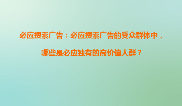 2025-10-30必應(yīng)搜索引擎競價推廣的核心優(yōu)勢與標(biāo)題內(nèi)容深度解析 一、必應(yīng)競價推廣的精準(zhǔn)流量優(yōu)勢 必應(yīng)搜索作為全球第二大搜索引擎,其廣告系統(tǒng)(MicrosoftAdvertising)覆蓋Windows系統(tǒng)內(nèi)置搜索、Edge瀏覽器及Office...