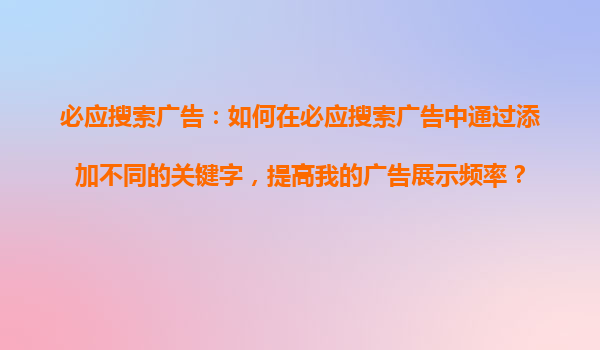 2025-10-27必應(yīng)搜索引擎競價推廣優(yōu)勢與標(biāo)題內(nèi)容深度解析 一、必應(yīng)搜索引擎的市場定位與用戶價值 必應(yīng)(Bing)作為微軟旗下的主流搜索引擎,在全球市場占據(jù)重要份額,尤其在歐美地區(qū)擁有穩(wěn)定的企業(yè)級用戶和高消費(fèi)能力...