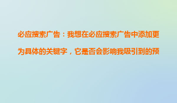 2025-10-25必應(yīng)搜索引擎競(jìng)價(jià)推廣的五大核心優(yōu)勢(shì)及標(biāo)題內(nèi)容分析 一、精準(zhǔn)流量覆蓋,鎖定高價(jià)值用戶群體 必應(yīng)搜索作為全球第二大商用搜索引擎,覆蓋Windows系統(tǒng)默認(rèn)搜索場(chǎng)景及企業(yè)辦公人群。其競(jìng)價(jià)推廣可精準(zhǔn)觸達(dá)30歲以...