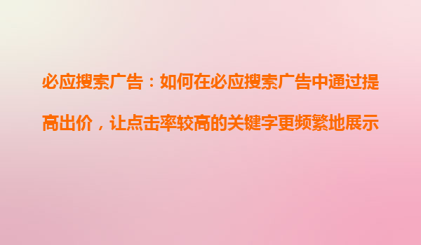 2025-10-24必應(yīng)搜索引擎競價(jià)推廣的核心優(yōu)勢解析 一、精準(zhǔn)流量覆蓋:鎖定高價(jià)值用戶群體 必應(yīng)搜索作為微軟生態(tài)的核心入口,覆蓋全球超過13億臺(tái)Windows設(shè)備默認(rèn)搜索引擎,其用戶群體具有顯著特征:商務(wù)人士占比高達(dá)41%...