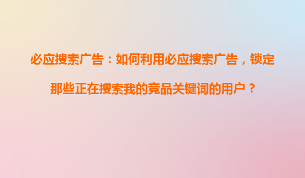 2025-10-19必應(yīng)搜索引擎競價(jià)推廣的核心優(yōu)勢與標(biāo)題內(nèi)容深度解析 一、必應(yīng)競價(jià)推廣的精準(zhǔn)流量優(yōu)勢 作為微軟旗下搜索引擎,必應(yīng)覆蓋全球高端用戶群體。其競價(jià)廣告系統(tǒng)通過微軟賬號體系可獲得精準(zhǔn)用戶畫像,支持職業(yè)、收...