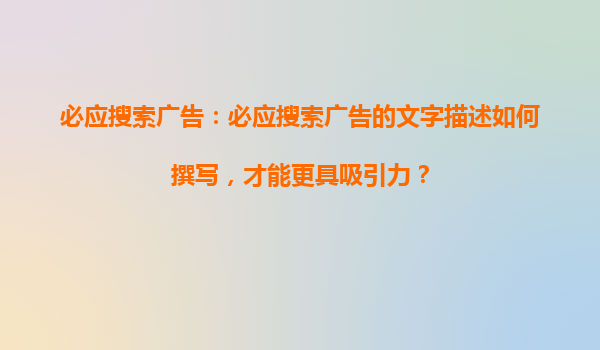 2025-10-18必應(yīng)搜索引擎競(jìng)價(jià)推廣優(yōu)勢(shì)及標(biāo)題內(nèi)容深度解析 一、必應(yīng)搜索引擎的市場(chǎng)定位與用戶價(jià)值 必應(yīng)(Bing)作為微軟旗下核心搜索引擎,在全球搜索市場(chǎng)占據(jù)重要份額,尤其在企業(yè)用戶和高凈值人群中滲透率顯著。其用戶...