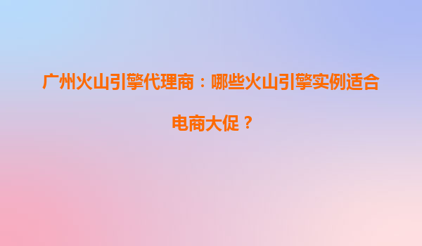 廣州火山引擎代理商:哪些火山引擎實例適合電商大促?