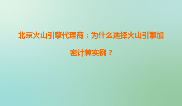 北京火山引擎代理商:為什么選擇火山引擎加密計算實例?