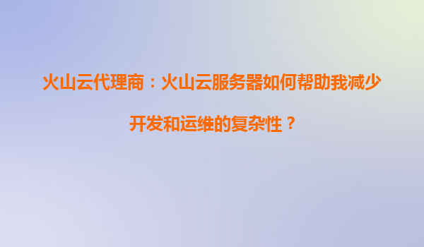 火山云代理商:火山云服務器如何幫助我減少開發(fā)和運維的復雜性?