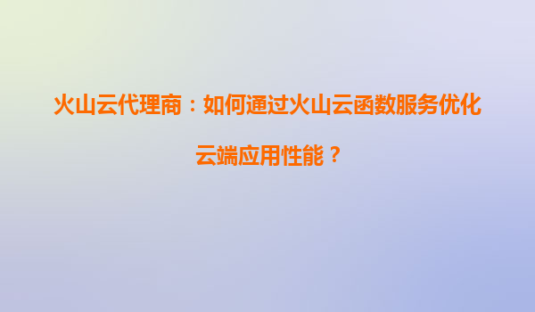 火山云代理商:如何通過火山云函數(shù)服務(wù)優(yōu)化云端應(yīng)用性能?