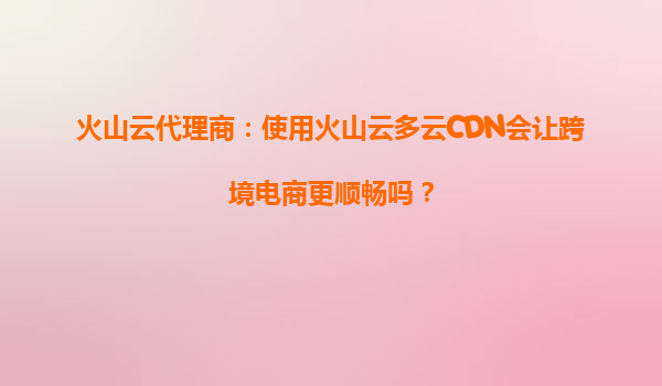 火山云代理商:使用火山云多云cdn會(huì)讓跨境電商更順暢嗎?