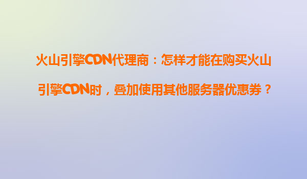 火山引擎cdn代理商指南:如何疊加使用優(yōu)惠券優(yōu)化采購成本