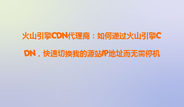 火山引擎cdn代理商指南:如何無縫切換源站IP地址
