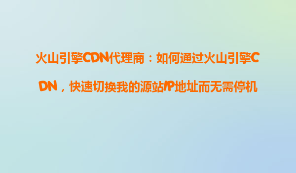 火山引擎cdn代理商指南:如何無縫切換源站IP地址