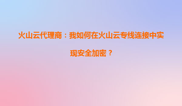 2025-09-21火山云專線連接安全加密解決方案 一、火山云專線連接概述 火山云專線連接(DirectConnect)是火山引擎提供的一種高速、低延遲、高可用的網(wǎng)絡(luò)連接服務(wù),能夠幫助企業(yè)構(gòu)建混合云架構(gòu),實現(xiàn)本地數(shù)據(jù)中心與火山云之間...
