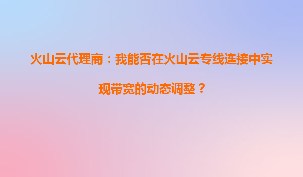 2025-09-22火山云代理商:我能否在火山云專線連接中實現(xiàn)帶寬的動態(tài)調(diào)整? 在當今快速發(fā)展的數(shù)字化時代,企業(yè)對網(wǎng)絡(luò)連接的穩(wěn)定性和彈性要求日益提高。火山云專線連接作為企業(yè)級網(wǎng)絡(luò)解決方案,其靈活的帶寬調(diào)...