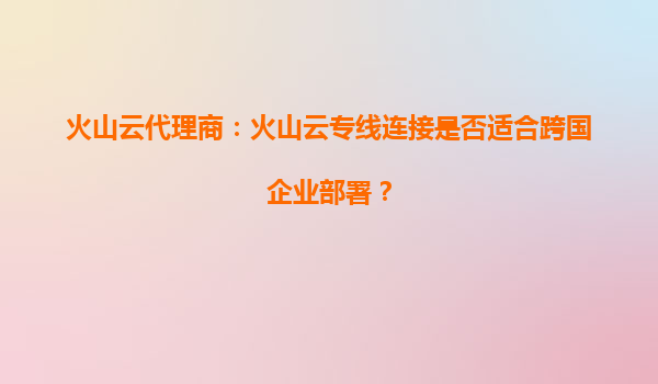 2025-09-21火山云代理商:火山云專線連接如何助力跨國(guó)企業(yè)高效部署? 一、跨國(guó)企業(yè)網(wǎng)絡(luò)連接的痛點(diǎn)與需求 隨著全球化業(yè)務(wù)擴(kuò)張,跨國(guó)企業(yè)對(duì)網(wǎng)絡(luò)連接的穩(wěn)定性、安全性和延遲提出了更高要求。傳統(tǒng)公網(wǎng)V...