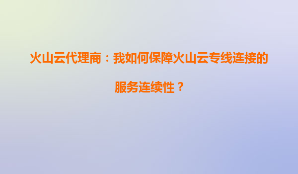 4008-020-360 火山云代理商:如何保障火山云專線連接的服務(wù)連續(xù)性 一、專線連接服務(wù)連續(xù)性的核心挑戰(zhàn) 在數(shù)字化轉(zhuǎn)型浪潮下,企業(yè)對(duì)云專線的穩(wěn)定性、低時(shí)延和高安全性需求日益增長(zhǎng)。作為火山云代理商,...