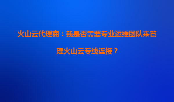 2025-09-21火山云代理商:我是否需要專業(yè)運(yùn)維團(tuán)隊(duì)來(lái)管理火山云專線連接? 引言:專線連接的核心挑戰(zhàn)與決策 隨著企業(yè)數(shù)字化轉(zhuǎn)型加速,穩(wěn)定、低延遲的網(wǎng)絡(luò)連接成為業(yè)務(wù)連續(xù)性的關(guān)鍵。火山云專線(DirectConne...