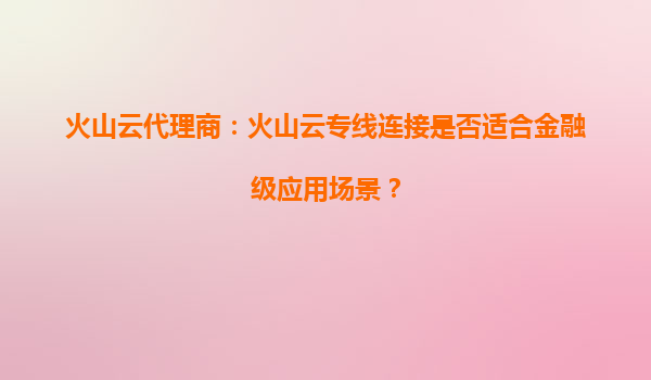 4008-020-360 火山云代理商:火山云專線連接是否適合金融級應(yīng)用場景? 一、金融級應(yīng)用的網(wǎng)絡(luò)需求與挑戰(zhàn) 金融行業(yè)對網(wǎng)絡(luò)連接的穩(wěn)定性、安全性和低延遲要求極高,尤其是在高頻交易、跨境支付、數(shù)據(jù)中心互聯(lián)等場景中。傳統(tǒng)...