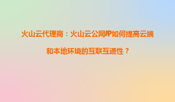 2025-09-16火山云代理商:如何通過火山云公網(wǎng)IP提升云服務(wù)的整體性能? 一、引言:公網(wǎng)IP的關(guān)鍵作用 在數(shù)字化轉(zhuǎn)型的浪潮中,穩(wěn)定的網(wǎng)絡(luò)連接和高效的云服務(wù)性能已成為企業(yè)核心需求。火山引擎(Volce...