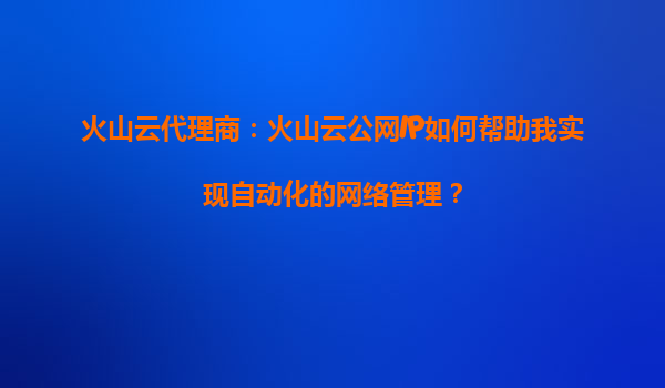 2025-09-16火山云代理商:火山云公網(wǎng)IP如何幫助我實(shí)現(xiàn)自動(dòng)化的網(wǎng)絡(luò)管理? 引言:自動(dòng)化網(wǎng)絡(luò)管理的需求 隨著企業(yè)數(shù)字化轉(zhuǎn)型的加速,網(wǎng)絡(luò)管理的復(fù)雜性日益增加。傳統(tǒng)的人工配置和管理方式不僅效率低...