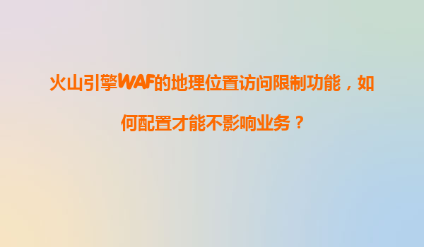 4008-020-360 火山引擎WAF地理位置訪問限制功能的高效配置與業(yè)務(wù)無感實(shí)踐 一、理解地理位置訪問限制的核心價(jià)值 火山引擎Web應(yīng)用防火墻(WAF)的地理位置訪問限制功能,通過智能識(shí)別請(qǐng)求來源IP的地理位置(國(guó)家/地區(qū)...