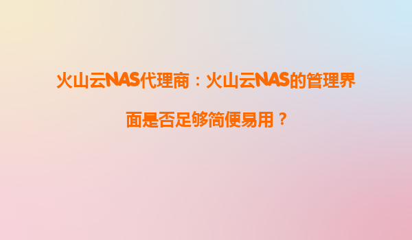 2025-09-06火山云NAS代理商指南:管理界面的簡便性與易用性探析 一、直觀的界面設(shè)計(jì):降低用戶學(xué)習(xí)門檻 火山云NAS的管理界面采用現(xiàn)代化的UI設(shè)計(jì)理念,布局清晰且功能模塊劃分明確。首頁通過可視化圖表展示存儲容量、...