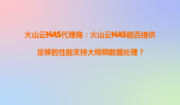 2025-09-05火山云NAS代理商視角:火山云NAS能否提供足夠的性能支持大規模數據處理? 作為火山云NAS的代理商,我們經常被客戶問到一個核心問題:火山云NAS能否提供足夠的性能來支持大規模數據處理?答案是肯定的。火山...