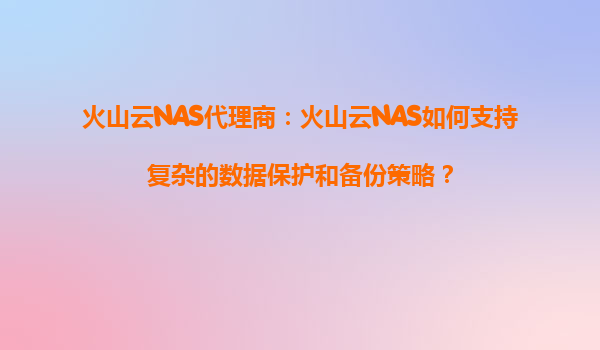 火山云NAS代理商:火山云NAS如何支持復雜的數據保護和備份策略? 引言 在當今數字化時代,企業數據正以前所未有的速度增長,數據的安全性和可用性成為企業IT架構的核心關注點。作為一款高性能的存儲解決方案...