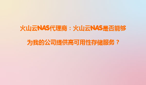 2025-09-04火山云NAS代理商解析:火山云NAS如何為企業提供高可用性存儲服務? 一、高可用性存儲的核心需求與企業挑戰 在數字化時代,企業數據呈爆炸式增長,對存儲系統的要求也越來越高。高可用性存儲需滿足以下核心...