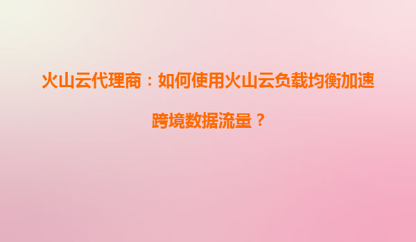 2025-09-03火山云代理商:如何使用火山云負載均衡加速跨境數(shù)據(jù)流量? 一、跨境數(shù)據(jù)加速的挑戰(zhàn)與需求 隨著全球數(shù)字化進程加快,跨境數(shù)據(jù)傳輸成為企業(yè)國際化運營的關(guān)鍵環(huán)節(jié)。然而,跨國網(wǎng)絡(luò)環(huán)境下普遍存在以下痛...