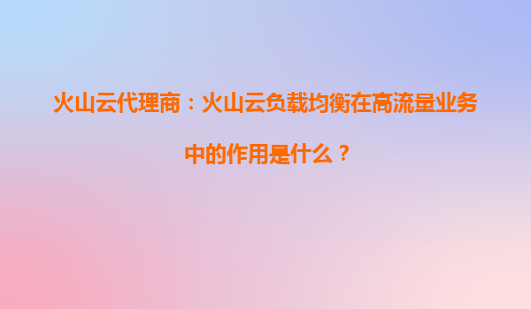 2025-09-02火山云代理商:火山云負載均衡如何幫助減少帶寬消耗? 引言 在當今數(shù)字化時代,企業(yè)對云計算資源的需求日益增長,尤其是需要高性能、高可用性的網(wǎng)絡(luò)服務(wù)。然而,隨著業(yè)務(wù)量的增加,...
